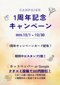 2024年12月19日にOPENした当店は、本日で1周年を迎えることができました!